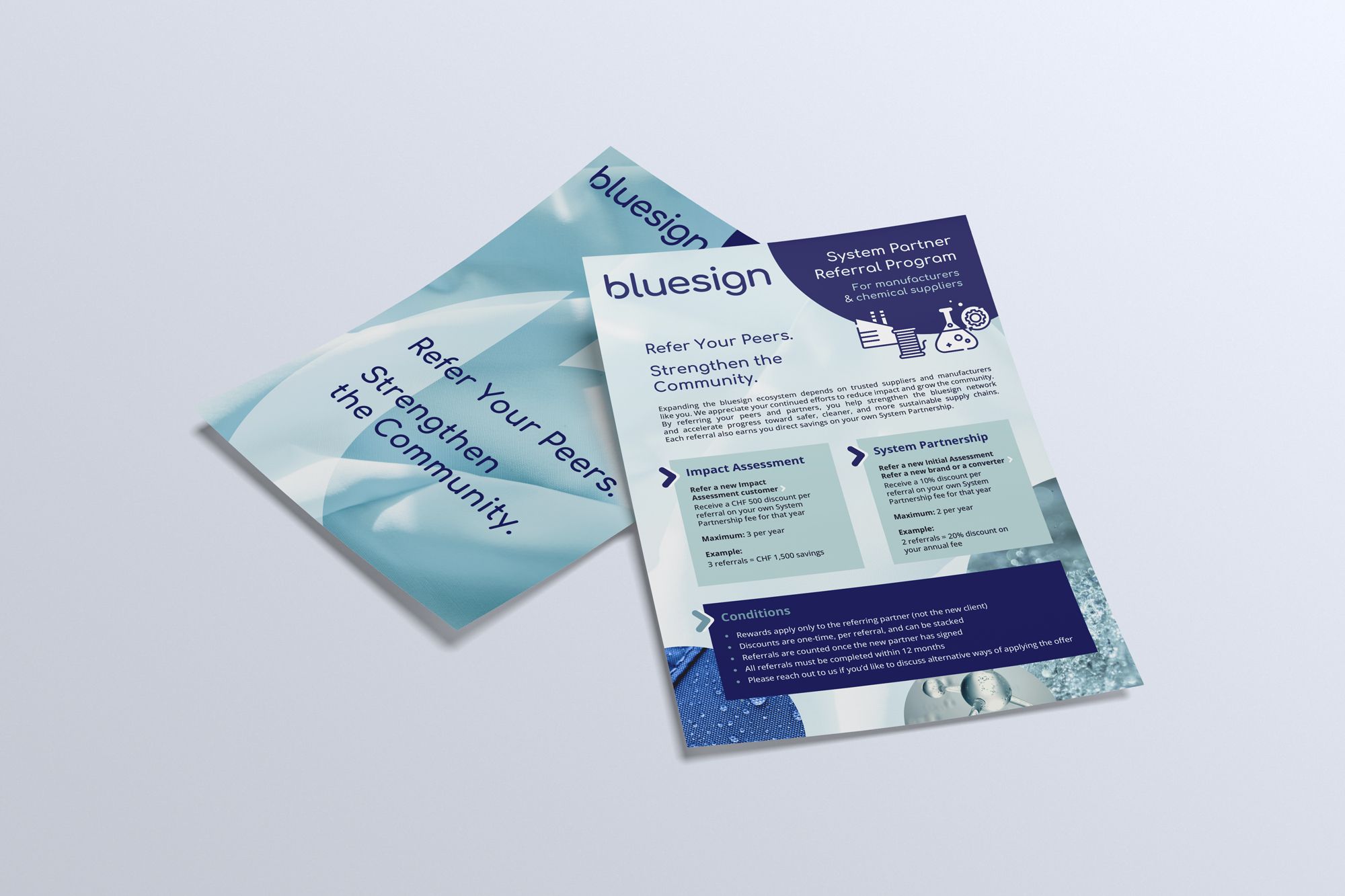 To support bluesign in the strategic redefinition of its brand identity, shifting its perception from a primarily technical authority to a more human, emotional, and accessible brand—without ever compromising its scientific credibility. The challenge was to create an identity capable of speaking simultaneously to brands, manufacturers, and end consumers, while supporting bluesign’s ambition to strengthen its B2C presence and reaffirm its role as a reference for a more responsible textile industry.